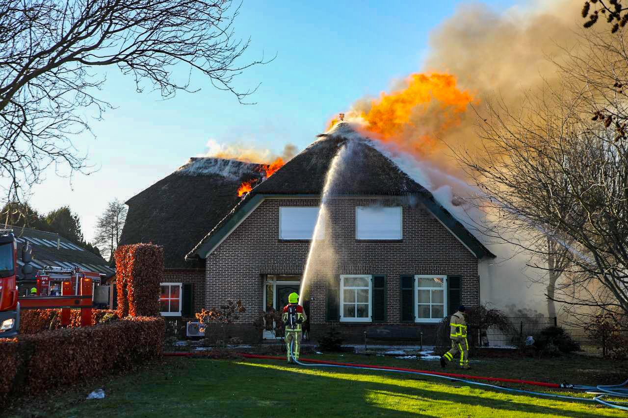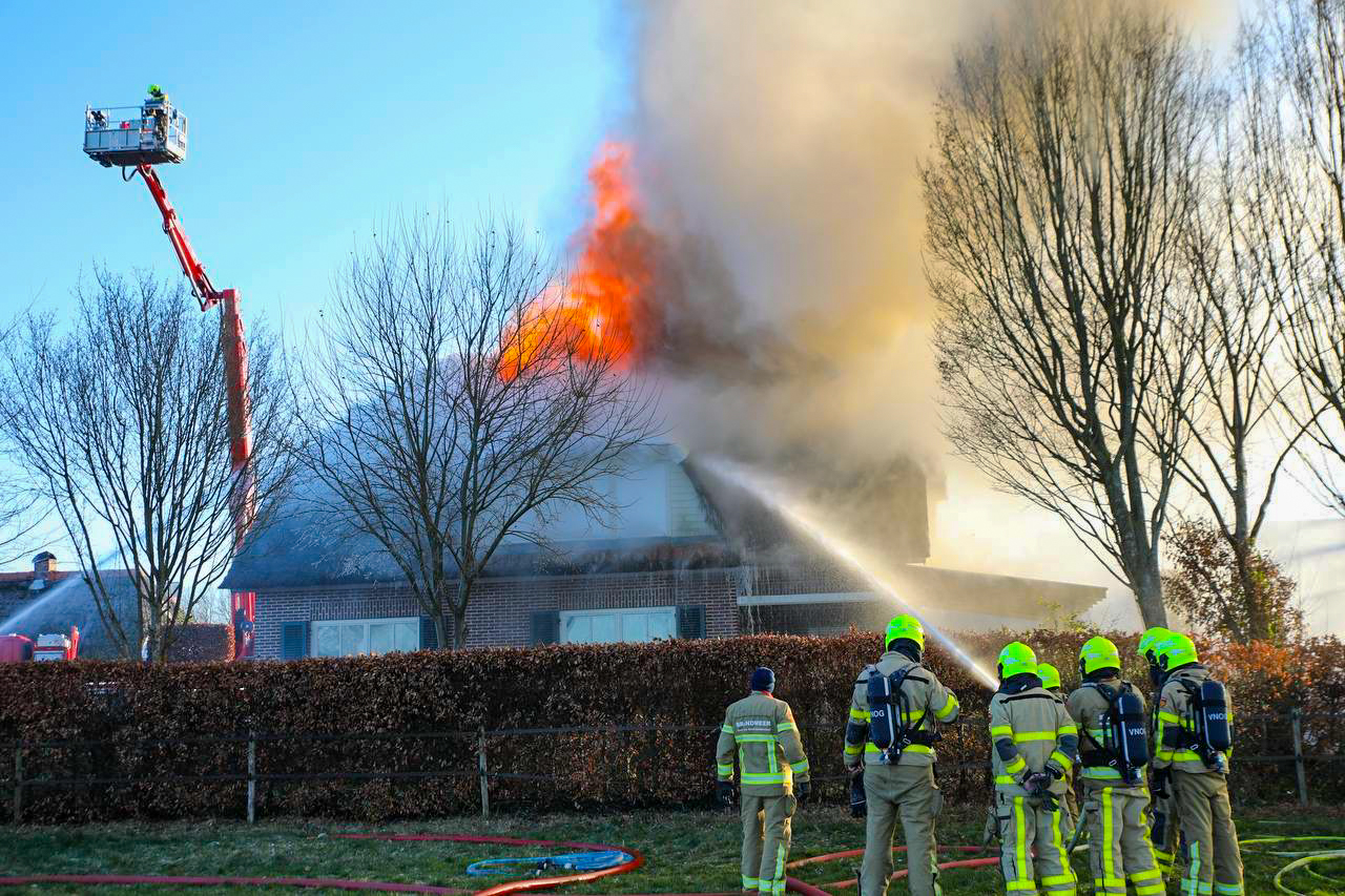 Bij aankomst van de brandweer sloegen de vlammen al uit de woning. De hulpdiensten hebben omliggende woningen uitvoorzorg ontruimd.